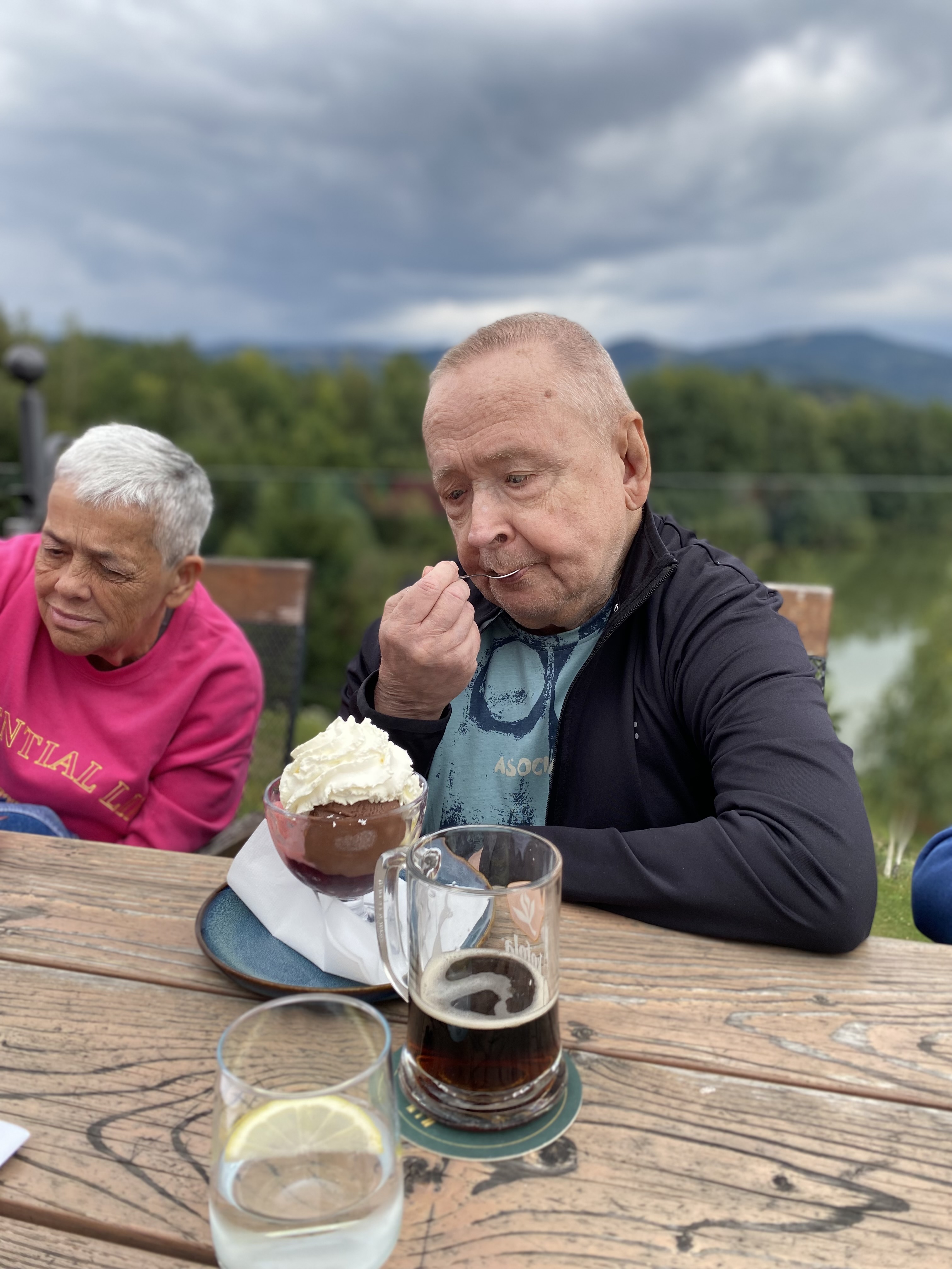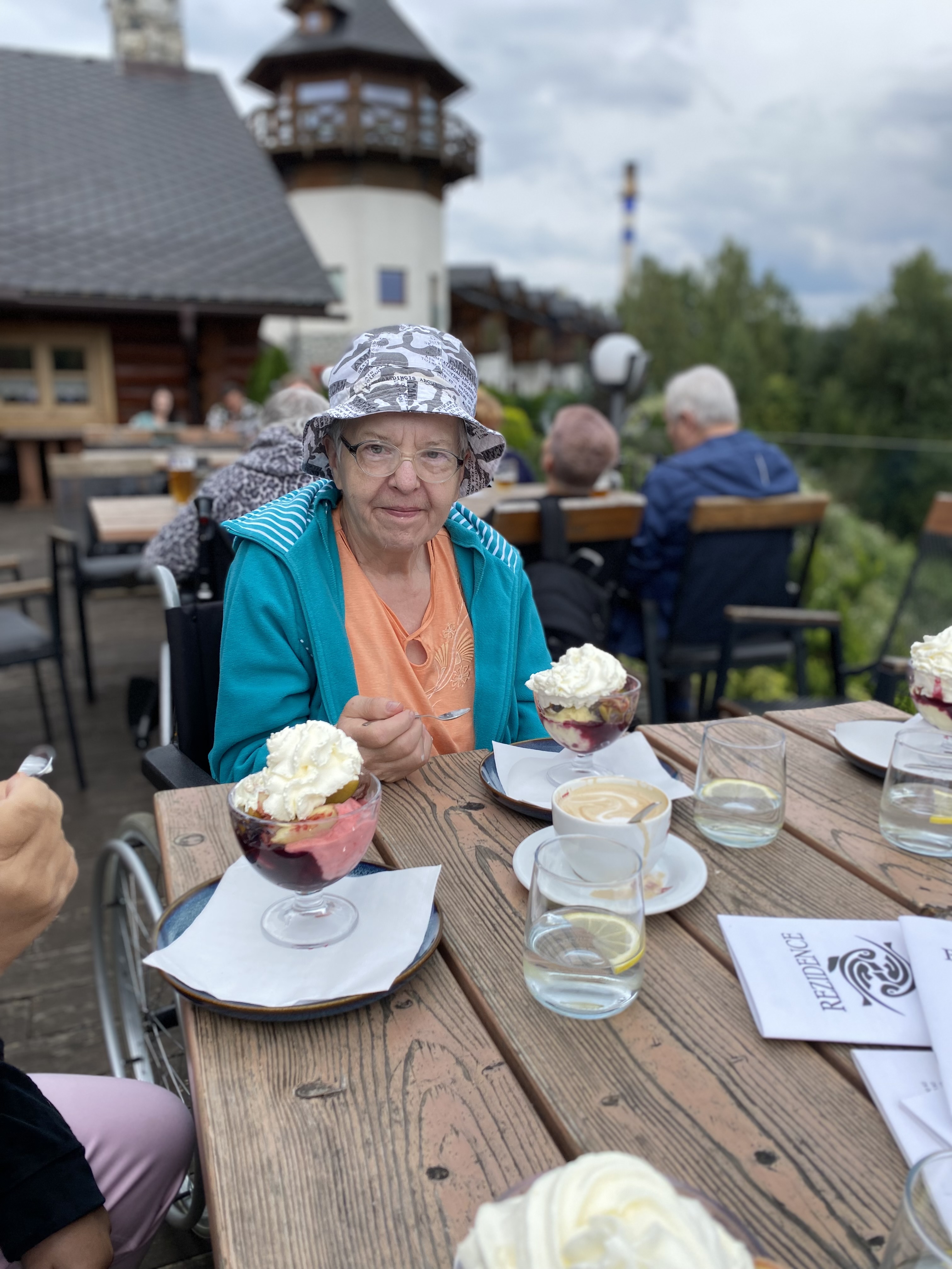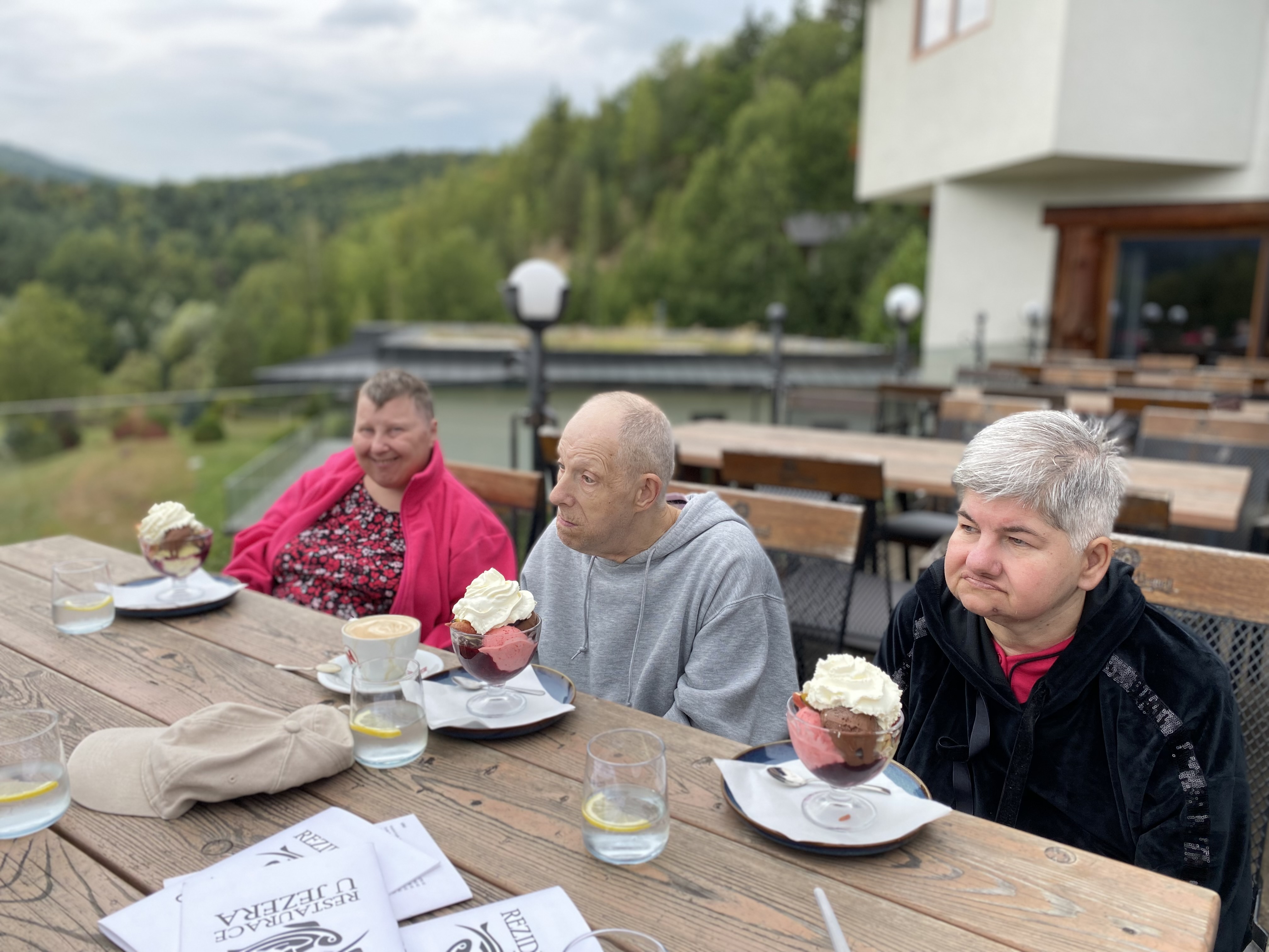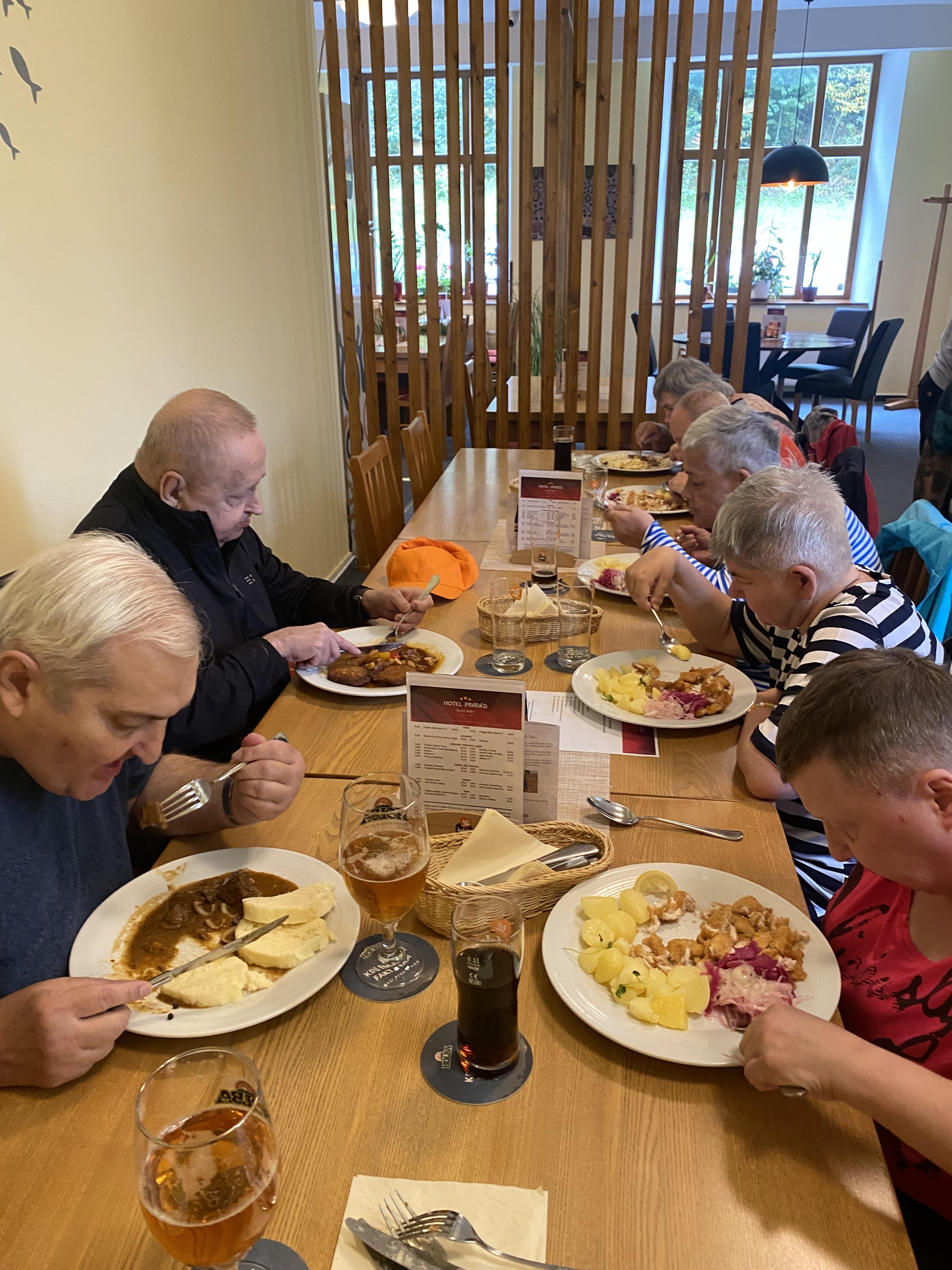 Do nedalekých Zlatých Hor si zašli na chutný oběd . Také si zajeli i k Rezidenci u jezera, kde je uvítal nádherný výhled na klidnou hladinu a na stolech velký zmrzlinový pohár s kávičkou. Velkou radost udělala také návštěva afrického muzea se zvířaty, která vzbudila spoustu zvědavosti i úsměvů.