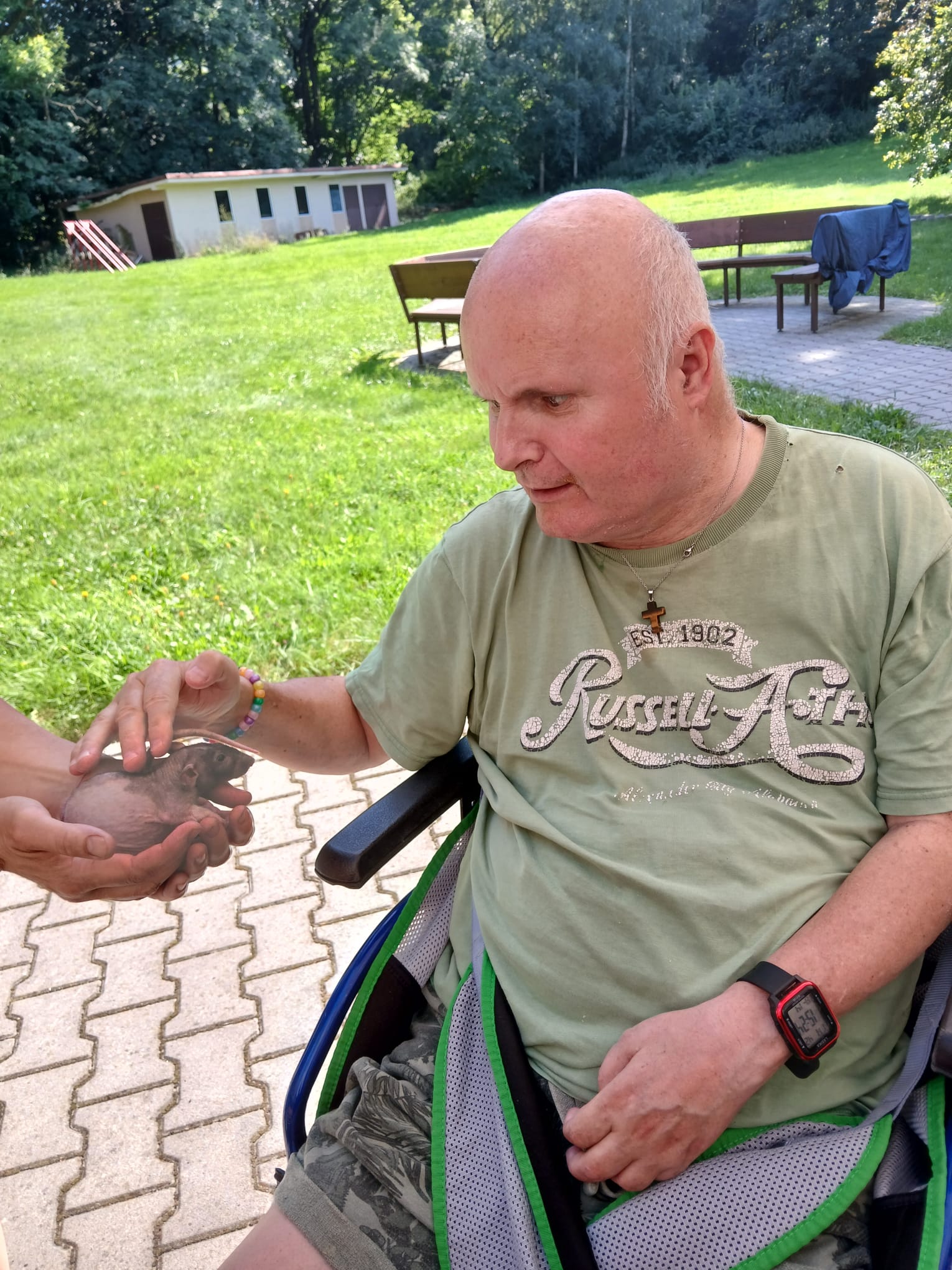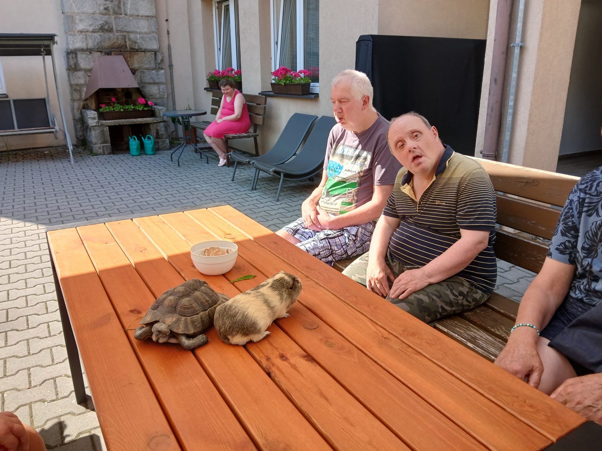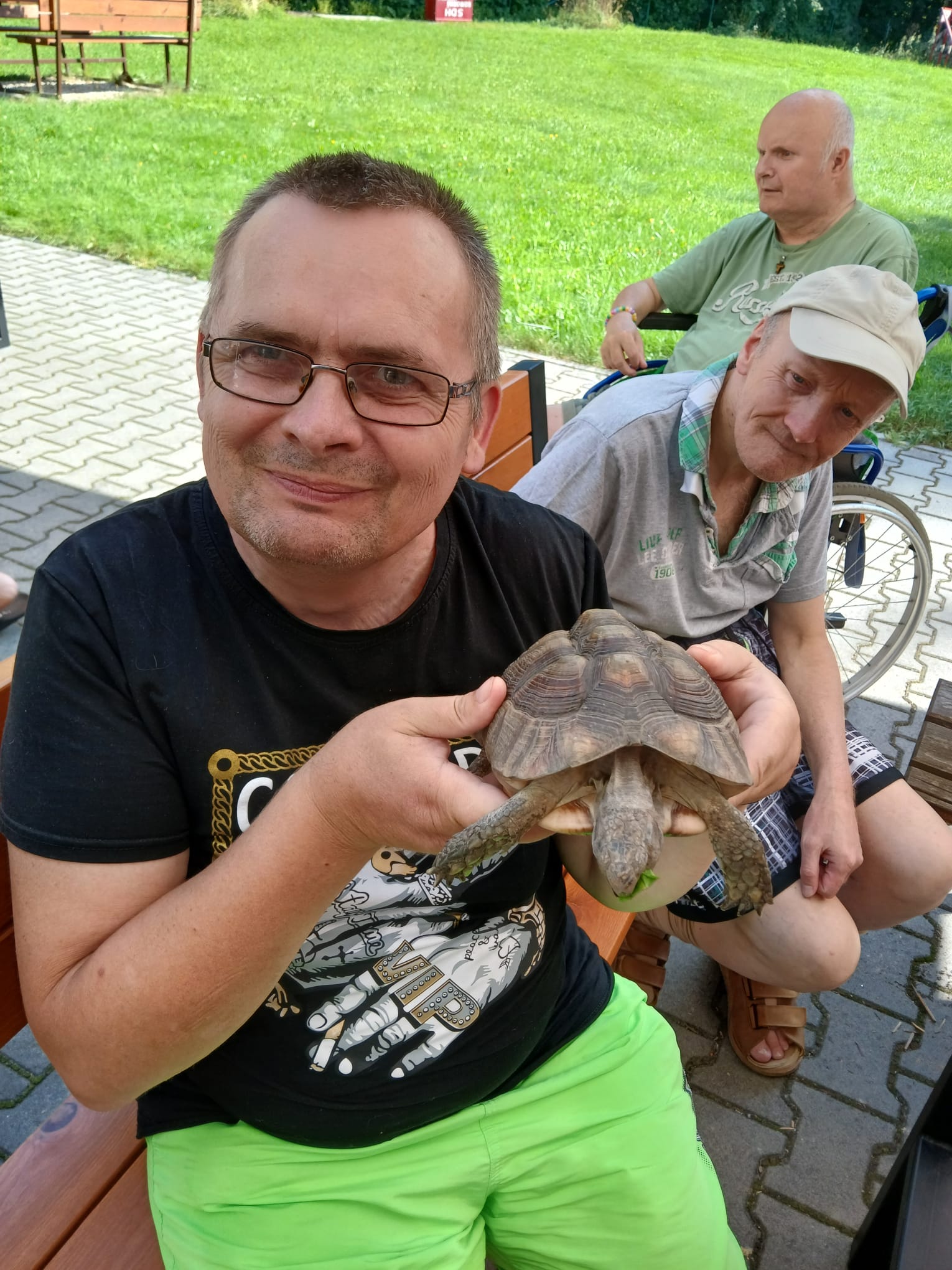 Klienti DOZP si jedno slunečné odpoledne užili setkání s různými zvířátky – potkánky, morčetem, želvou a také psem canisterapie. Venku na zahradě si je mohli hladit, pozorovat jejich chování a radovat se z jejich přítomnosti. Chvíle strávené se zvířátky byla plná smíchu, pohody a příjemných zážitků.